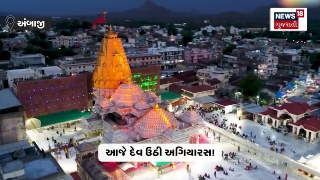 શક્તિ, ભક્તિ અને આસ્થાનો ત્રિવેણી સંગમ એટલે જગવિખ્યાત શક્તિપીઠ અંબાજી. આ યાત્રાધામ ગુજરાત અને રાજસ્થાનની સરહદ ઉપર આવેલું છે. હાલમાં દિવાળીના ઉત્સવ પર્વ ચાલી રહ્યાં છે, ત્યારે શક્તિપીઠ અંબાજી મંદિરમાં માતાના ભક્તોનો ભારે ઘસારો જોવા મળી રહ્યો છે. આજે દેવઉઠી અગિયારસ છે અને આજની જ લગ્નની સીઝન શરુ થઇ રહી છે. ત્યારે માંઇ ભક્તો ધજા અને હવન પૂજન કરાવી રહ્યાં છે. આજે સુરત વરાછાના ધારાસભ્ય કુમાર કાનાણીએ માતાજીના દર્શન કર્યા હતા. મંદીરની યજ્ઞ શાળામાં હોમ હવન કરીને રાજ્યની સુખાકારી માટે આહુતિ આપી માતાજીના મંદિરના શિખરે ધજા ચડાવીને પ્રાર્થના કરી હતી.