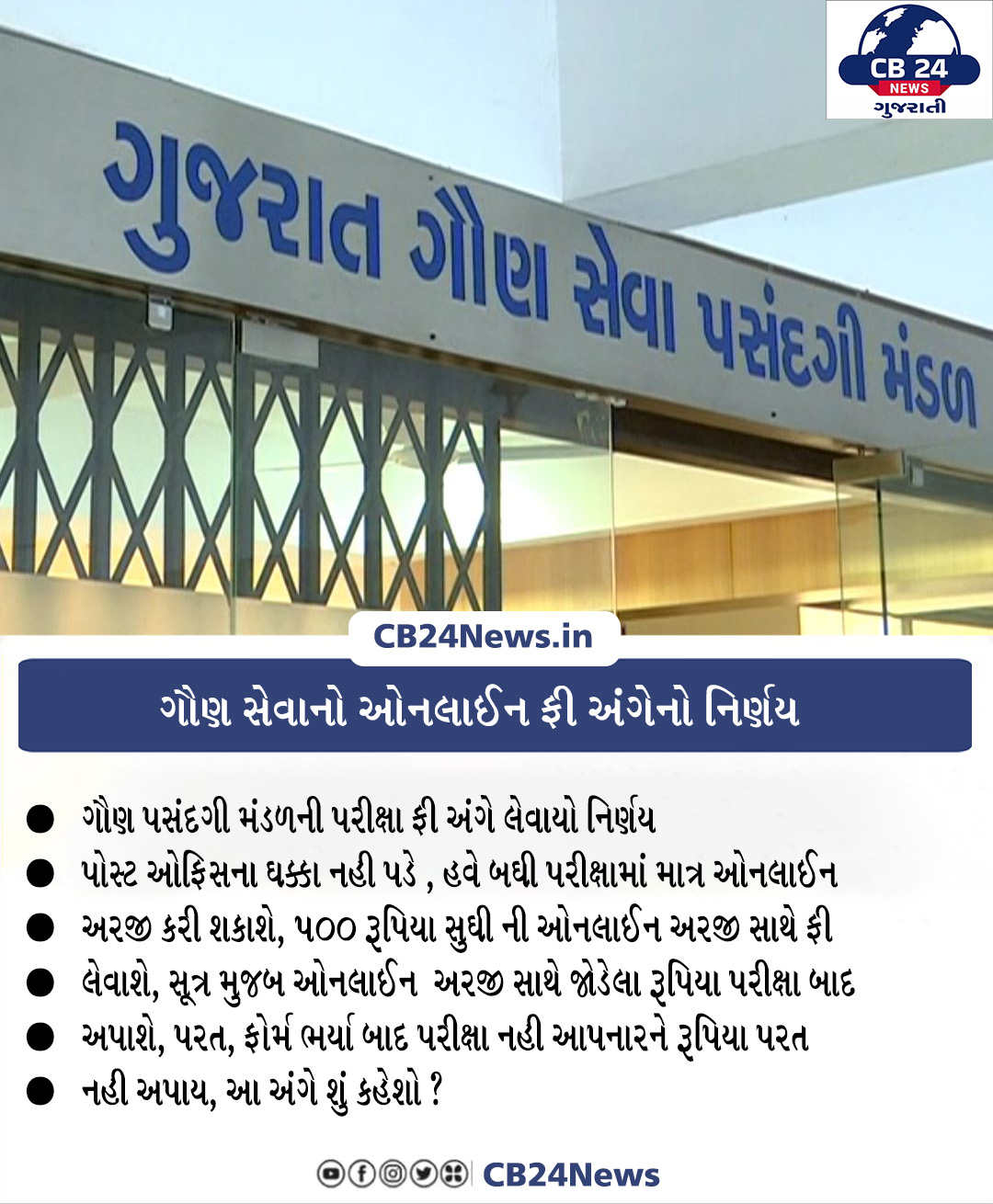 ગૌણ સેવાનો ઓનલાઈન ફી અંગેનો નિર્ણય