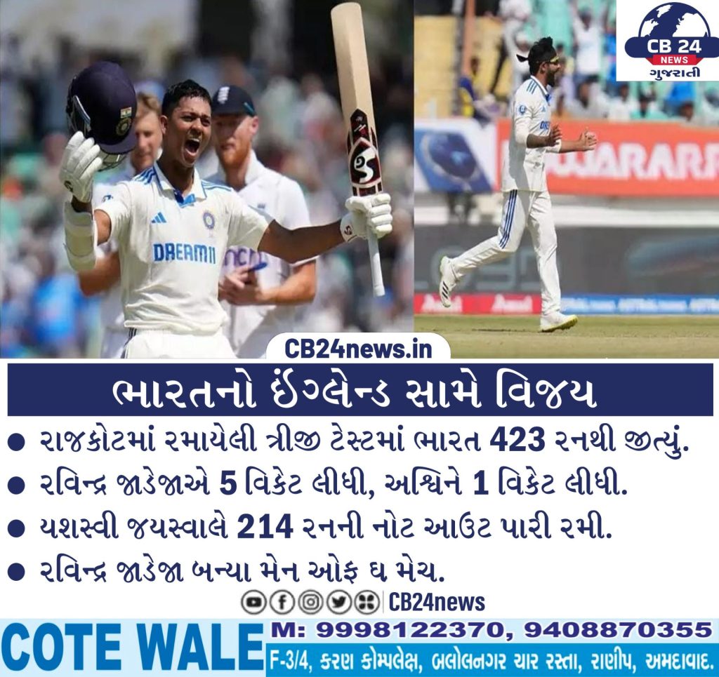 ભારતનો ઇંગ્લેન્ડ સામે વિજય