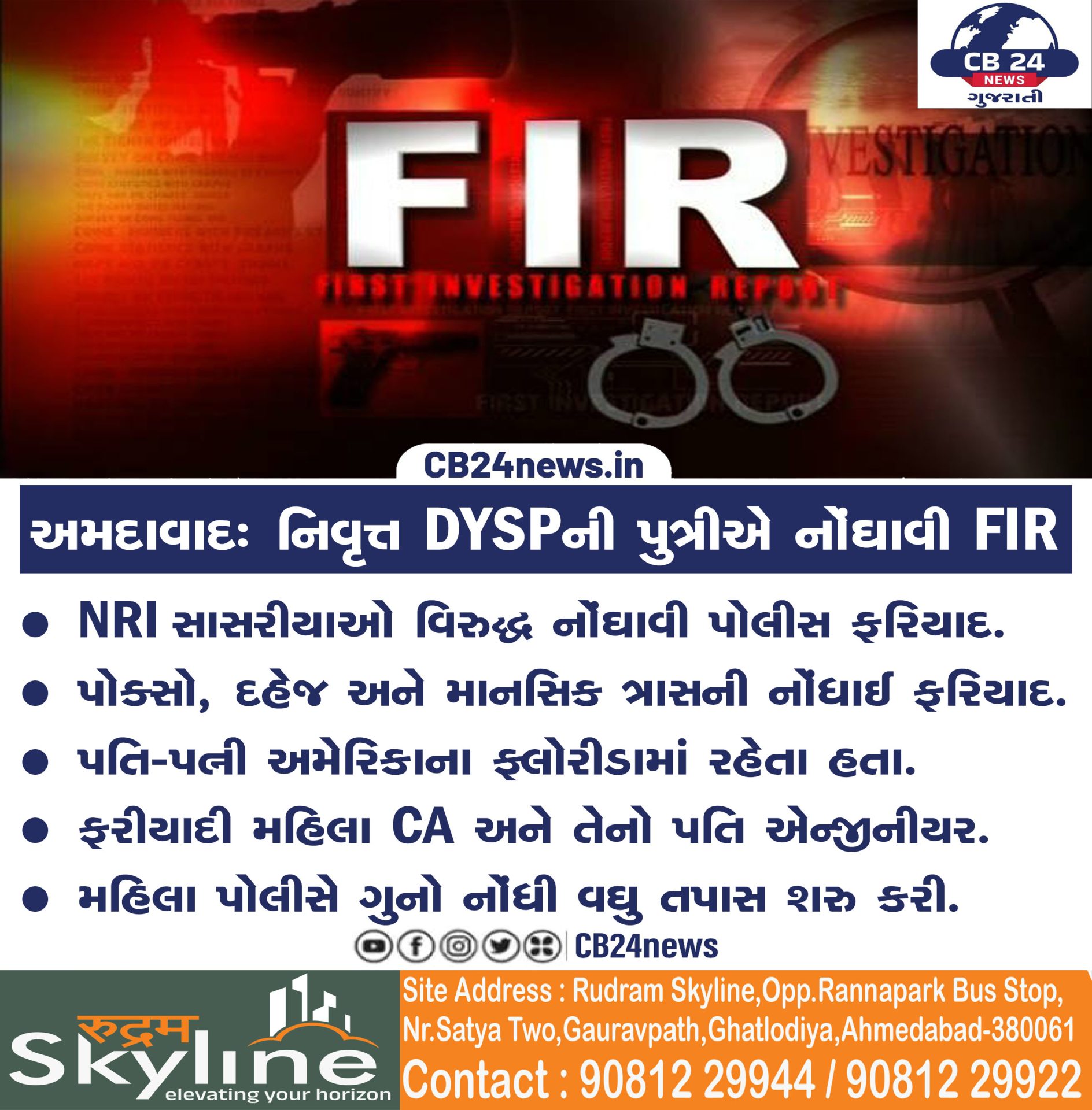 અમદાવાદ: નિવૃત્ત DYSPની પુત્રીએ નોંઘાવી FIR