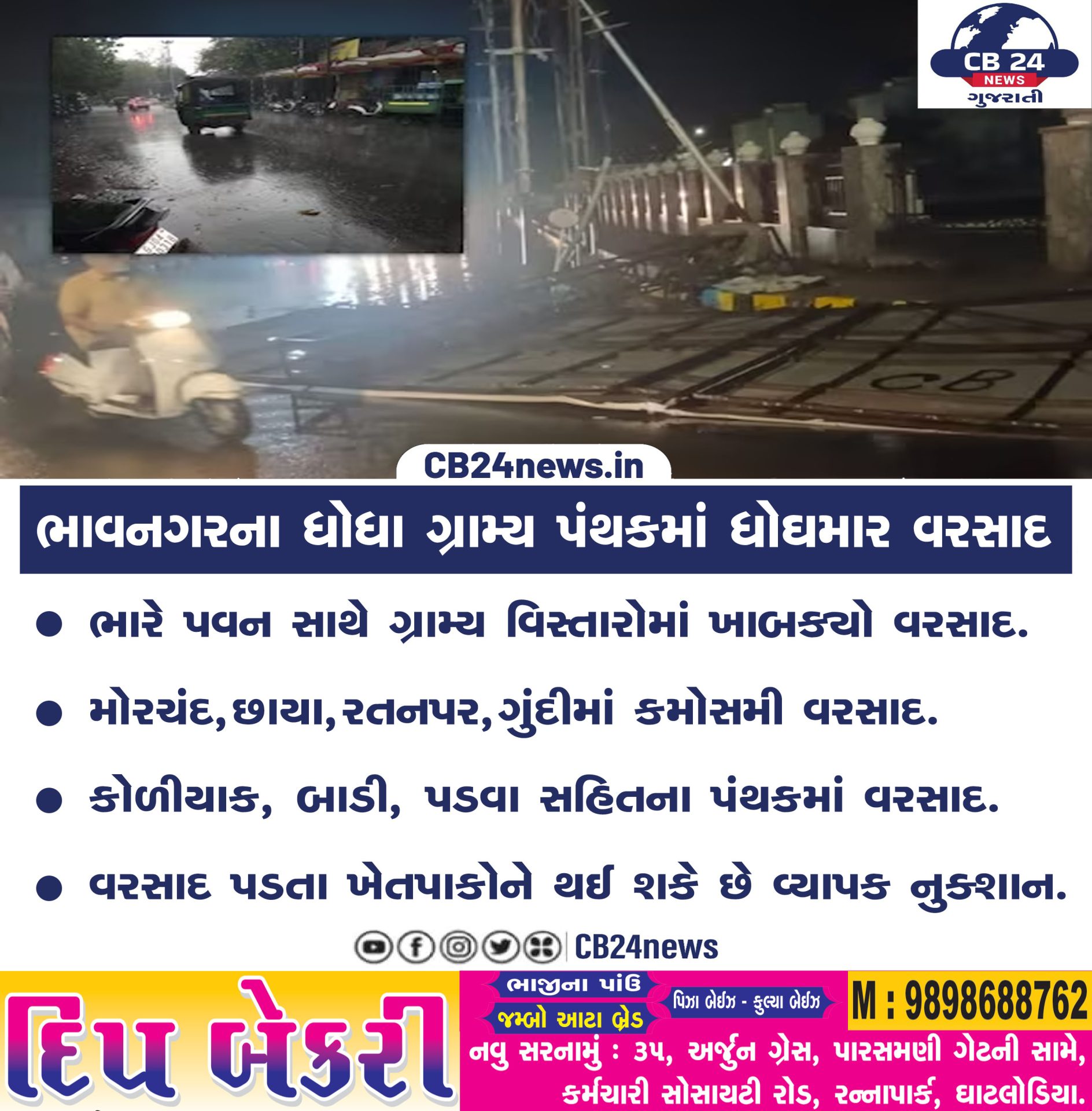 ભાવનગરના ધોધા ગ્રામ્ય પંથકમાં ધોઘમાર વરસાદ