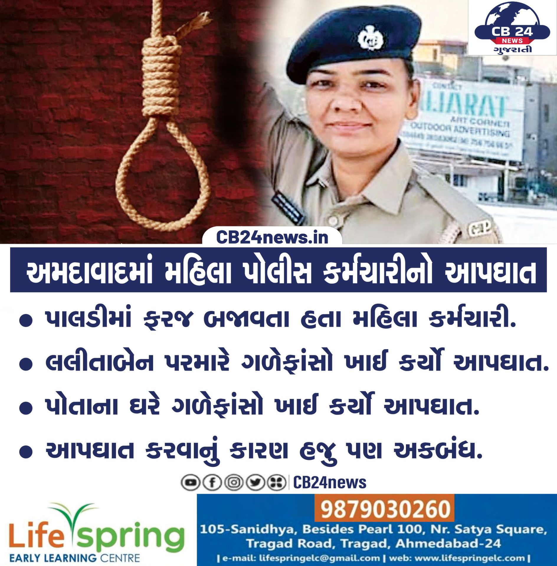 અમદાવાદમાં મહિલા પોલીસ કર્મચારીનો આપઘાત