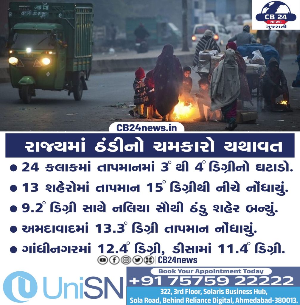 રાજ્યમાં ઠંડીનો ચમકારો યથાવત