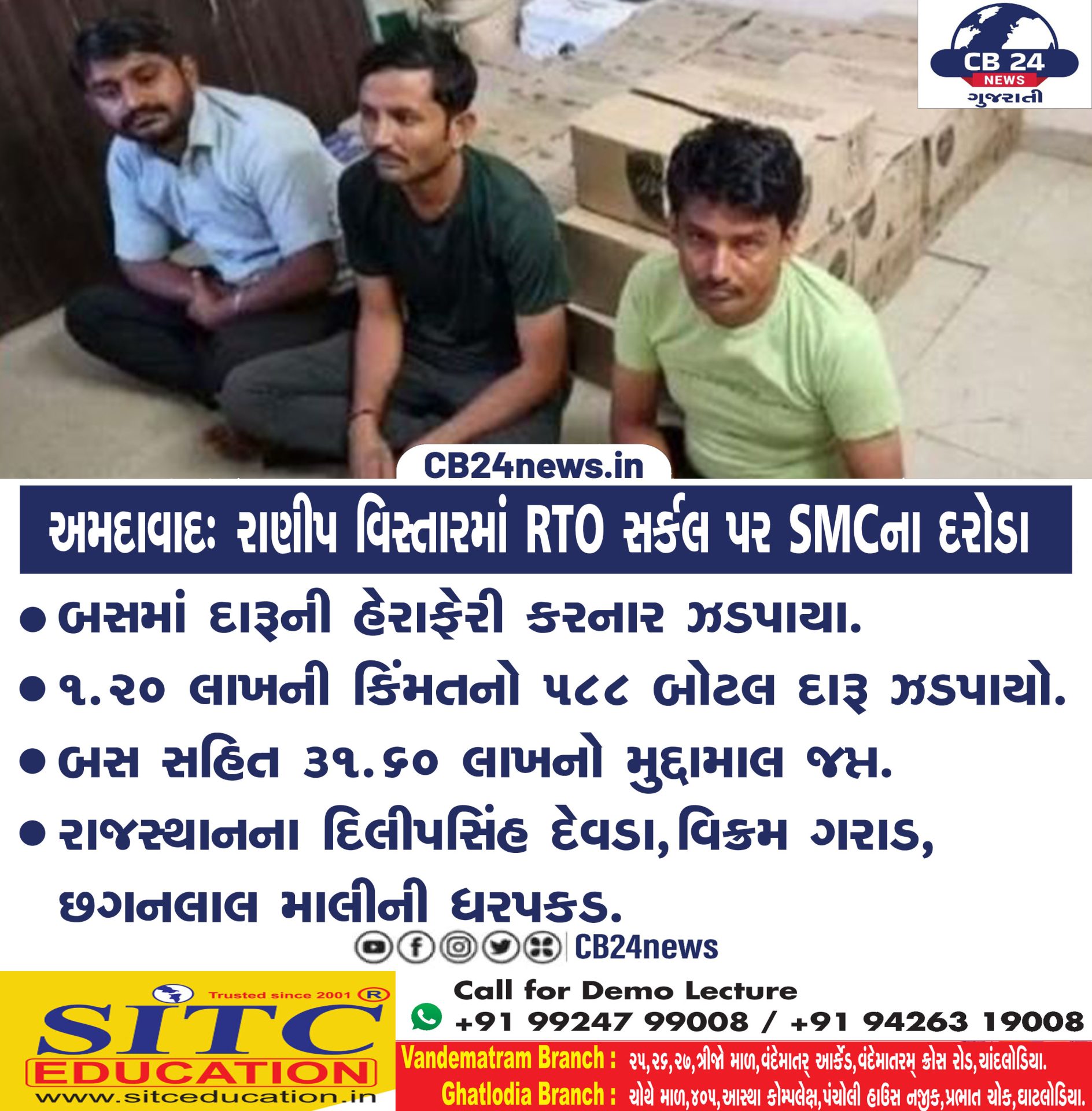 અમદાવાદ: રાણીપ વિસ્તારમાં RTO સર્કલ પર SMCના દરોડા