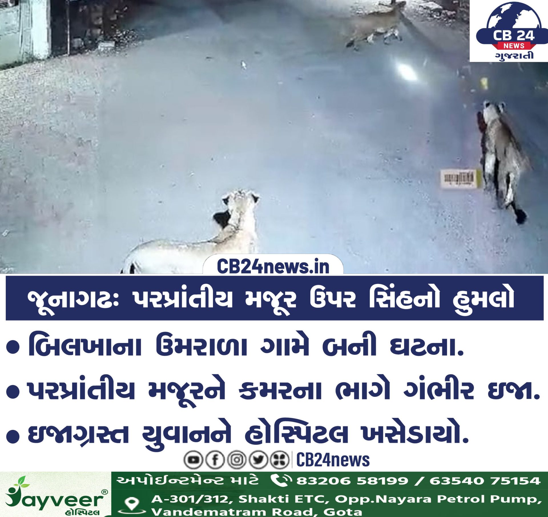 જૂનાગઢ: પરપ્રાંતીય મજૂર ઉપર સિંહનો હુમલો