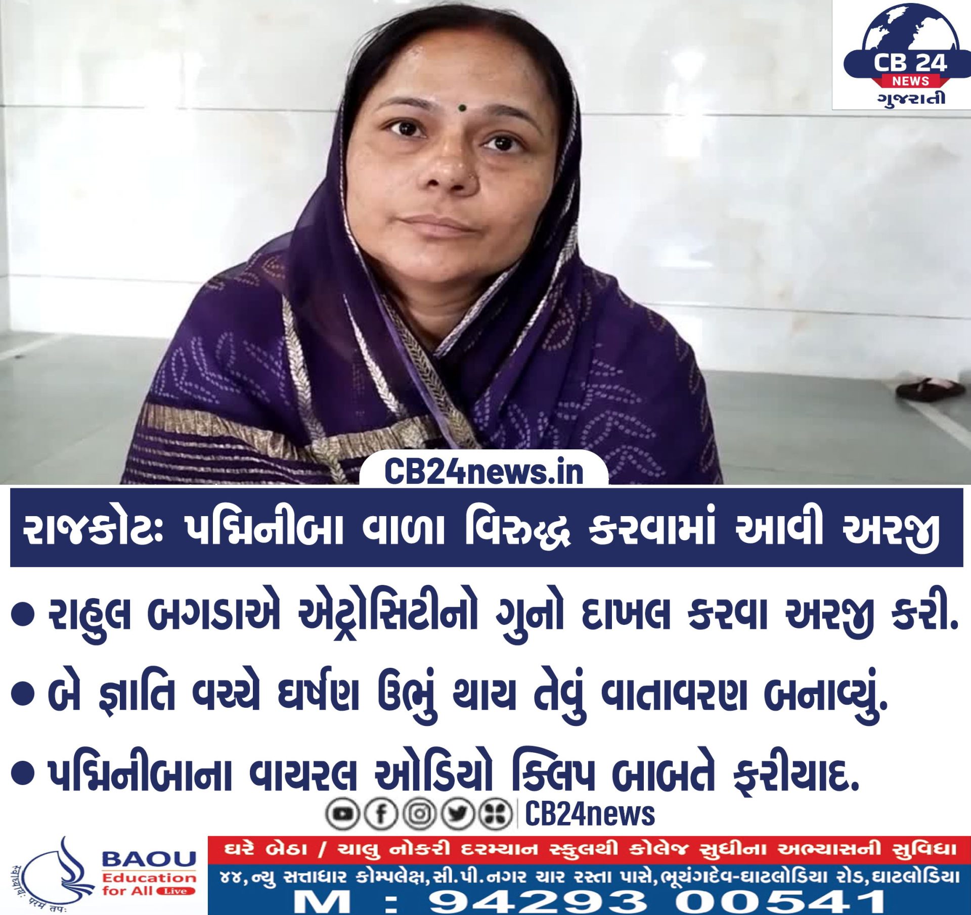 રાજકોટ: પદ્મિનીબા વાળા વિરુદ્ધ કરવામાં આવી અરજી