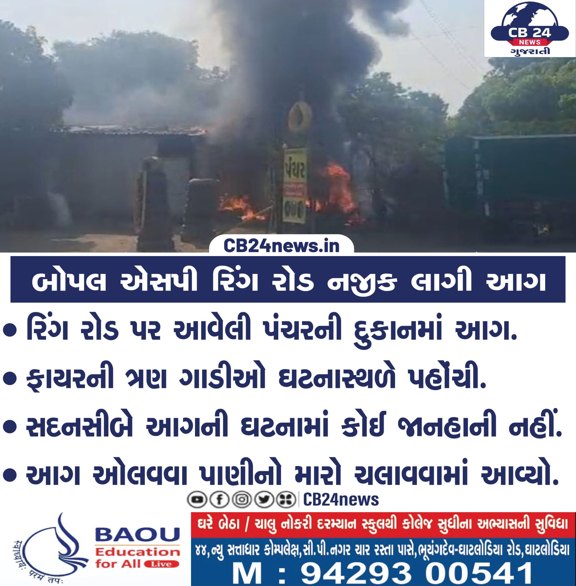 બોપલ એસપી રિંગ રોડ નજીક લાગી આગ