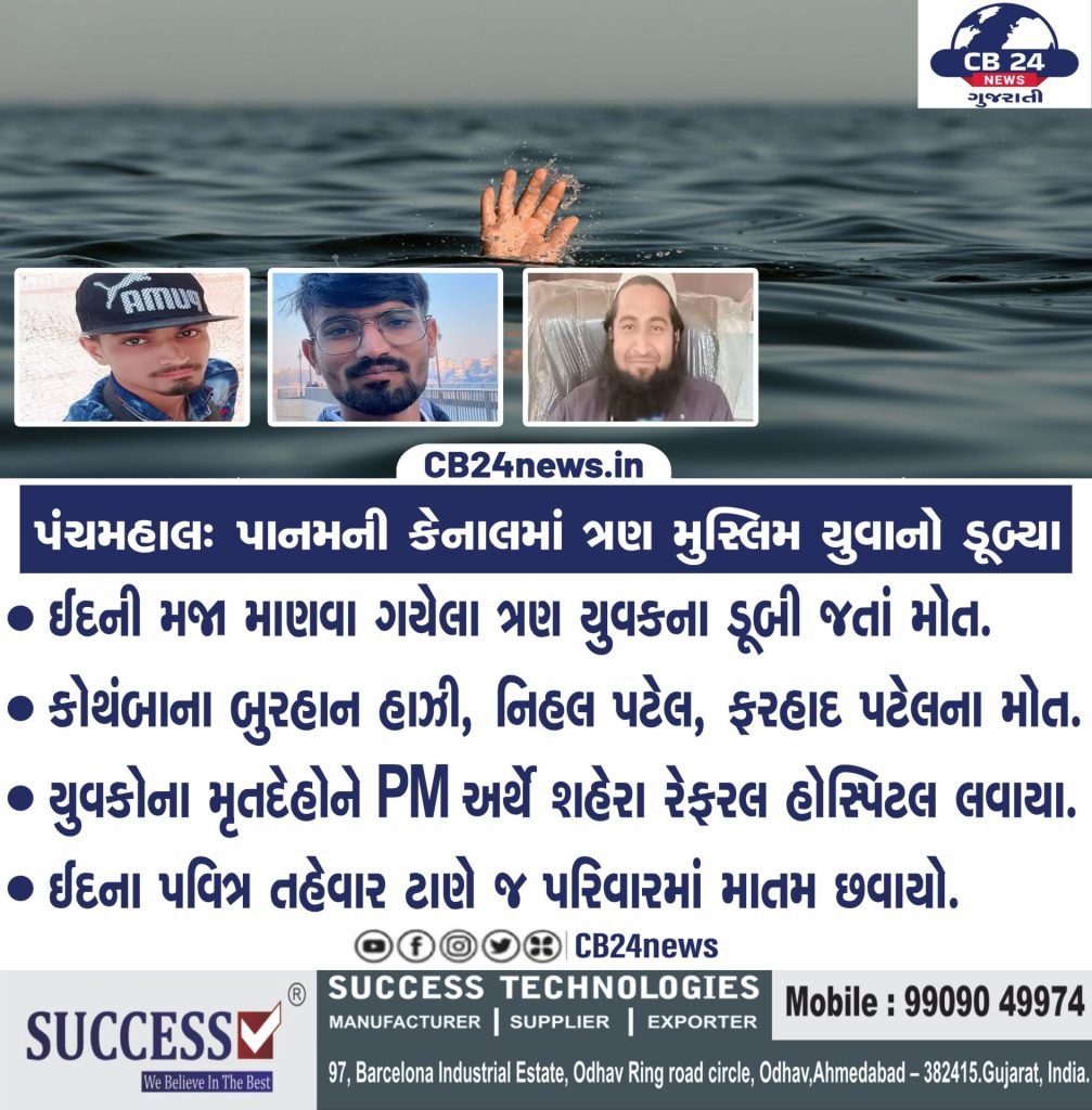 પંચમહાલ: પાનમની કેનાલમાં ત્રણ મુસ્લિમ યુવાનો ડૂબ્યા