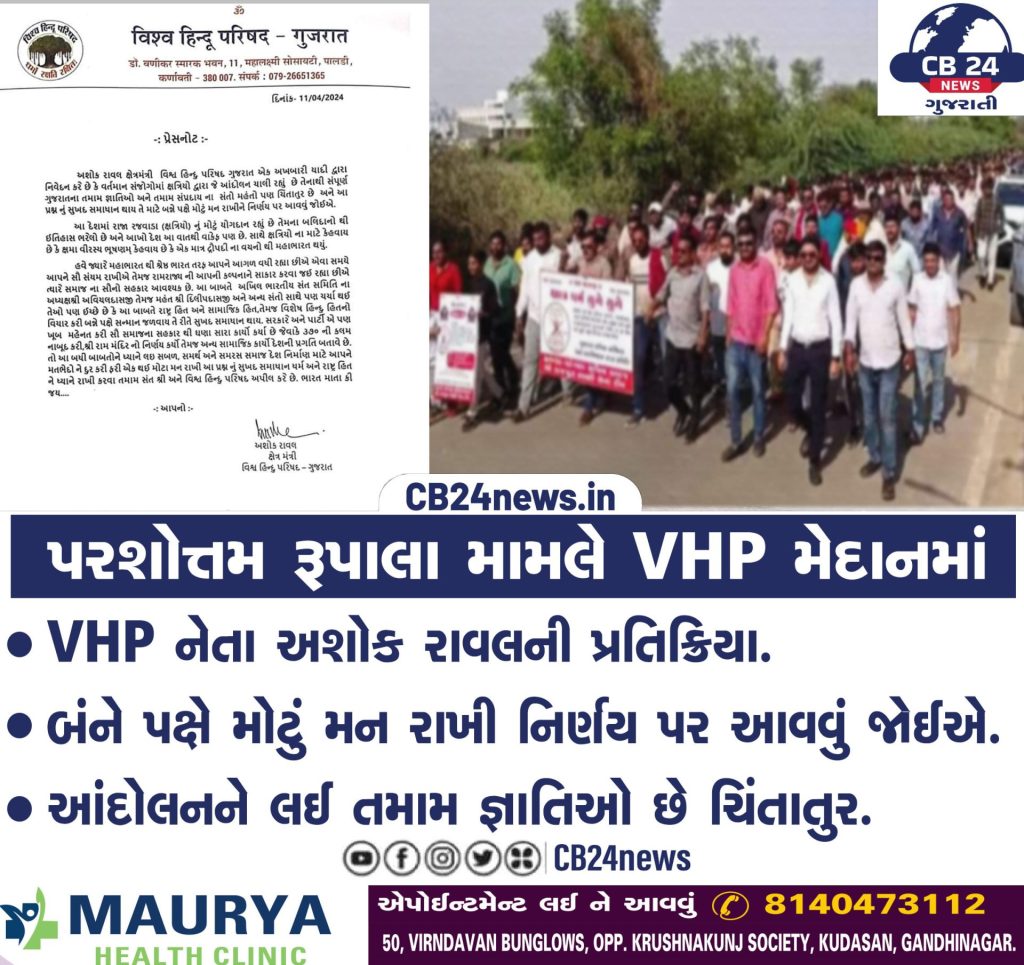વર્તમાન સમયમાં ક્ષત્રિય સમાજ દ્વારા જે આંદોલન ચાલી રહ્યું છે તે મુદ્દે વિહિપ વતી ક્ષેત્ર મંત્રી અશોક રાવલજી ની અપીલ, રાષ્ટ્રીય હિત , સામાજિક હિત વિશેષ હિંદુ હિતનો વિચાર કરી સમર્થ ,સબળ,સમરસ રાષ્ટ્ર માટે એક થઈએ તેવી સંત સમાજ અને વિશ્વ હિન્દુ પરિષદ અપીલ કરે છે.@VHPDigital @ANI#VHP pic.twitter.com/vCbnsjnnQN