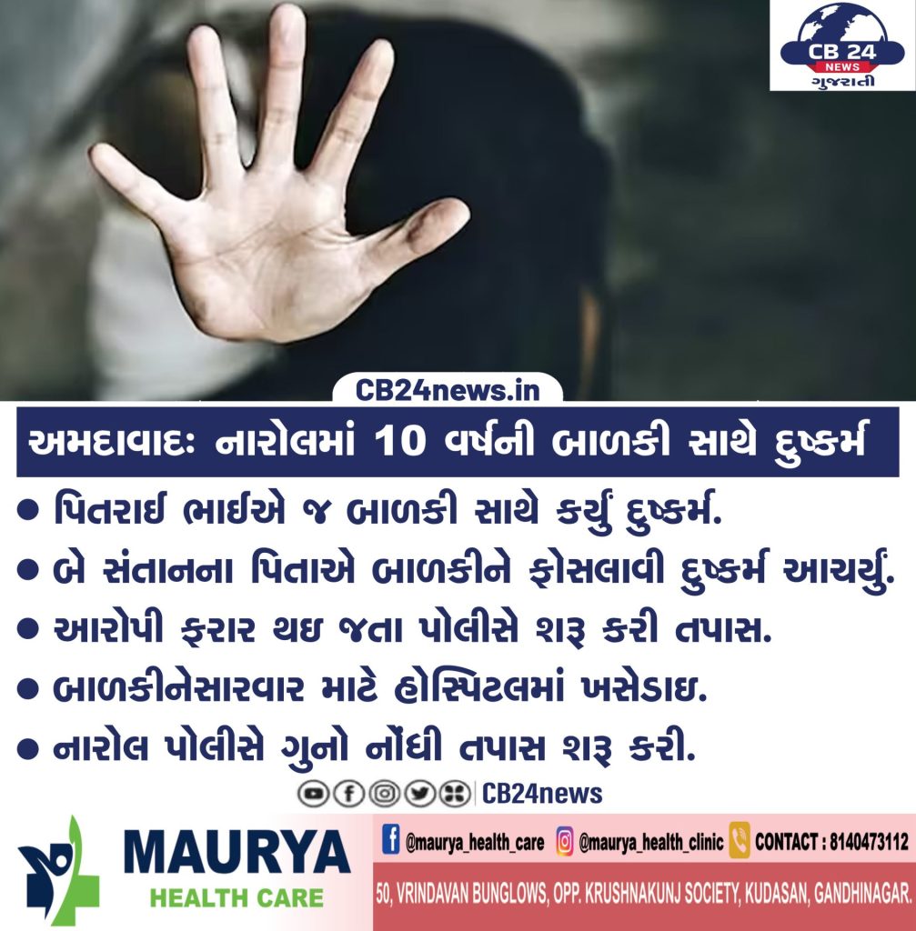 અમદાવાદ: નારોલમાં 10 વર્ષની બાળકી સાથે દુષ્કર્મ