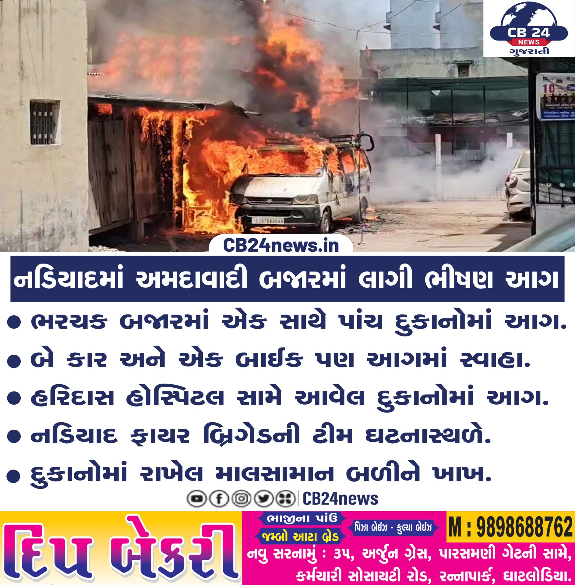 નડિયાદમાં અમદાવાદી બજારમાં લાગી ભીષણ આગ