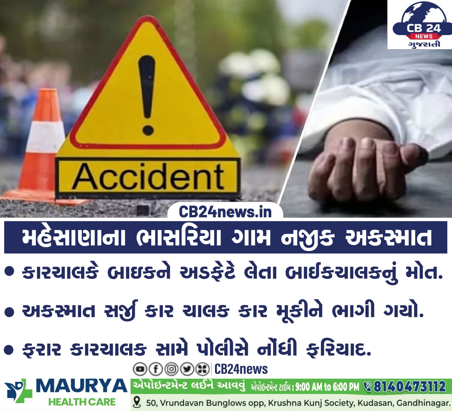 મહેસાણાના ભાસરિયા ગામ નજીક અકસ્માત