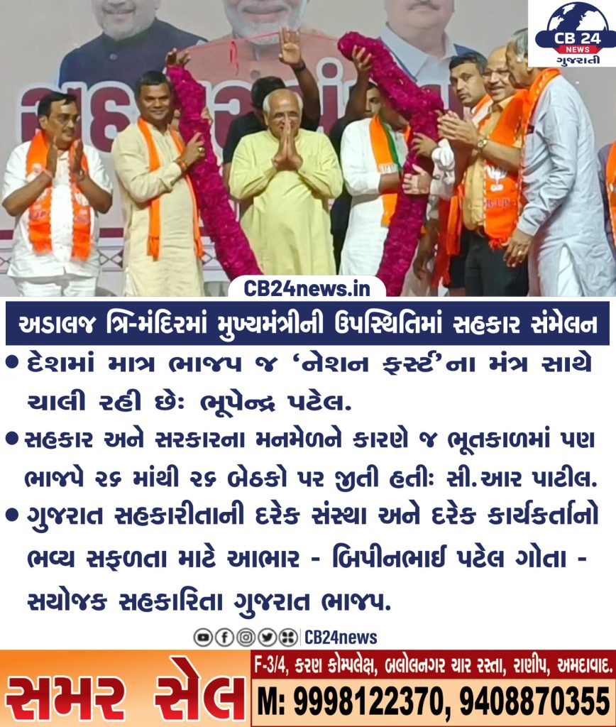 અડાલજ ત્રિ-મંદિરમાં મુખ્યમંત્રીની ઉપસ્થિતિમાં સહકાર સંમેલન