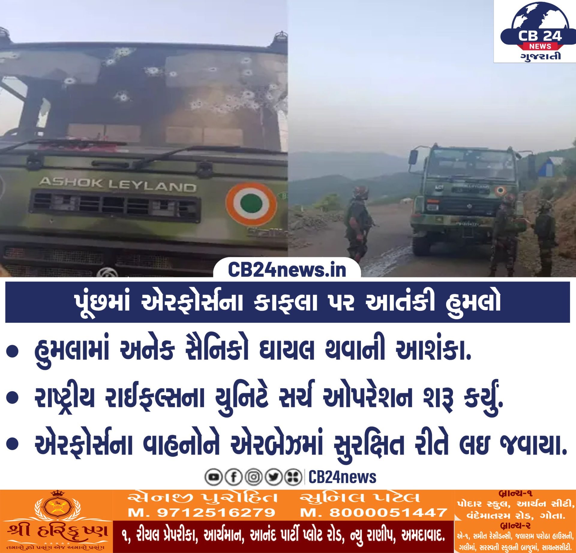 પૂંછમાં એરફોર્સના કાફલા પર આતંકી હુમલો