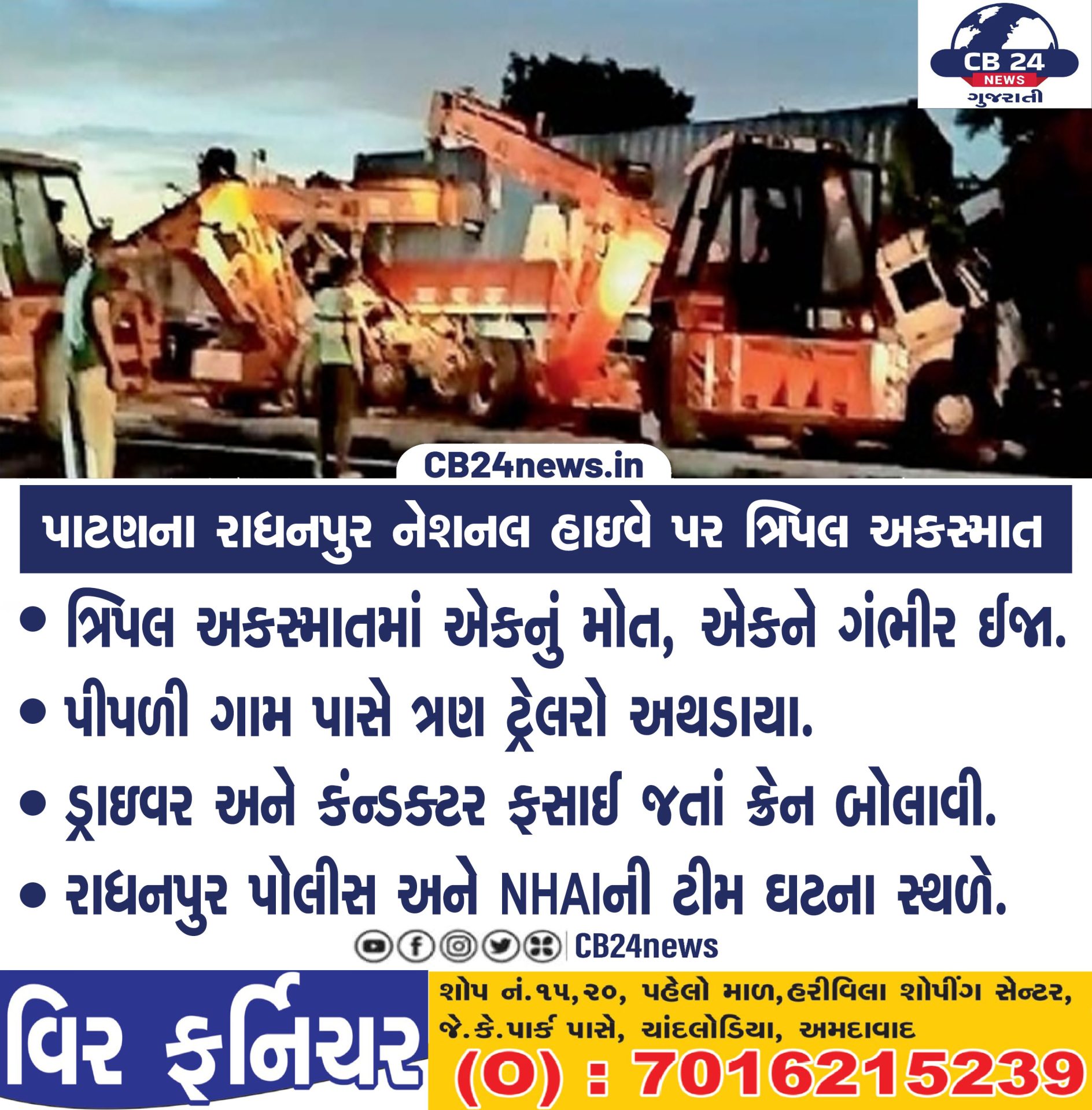 પાટણના રાધનપુર નેશનલ હાઇવે પર ત્રિપલ અકસ્માત