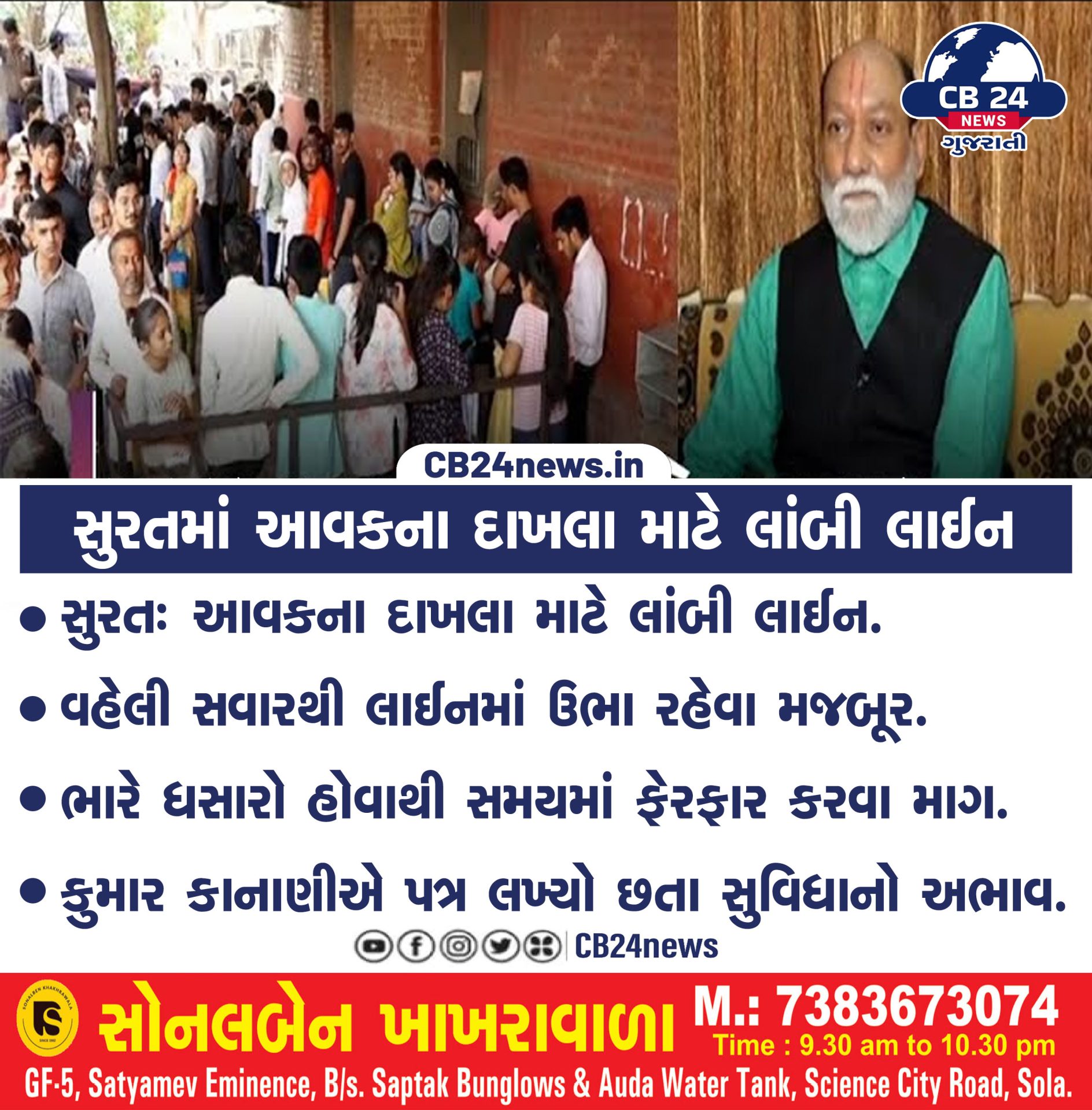 સુરતમાં આવકના દાખલા માટે લાંબી લાઈન