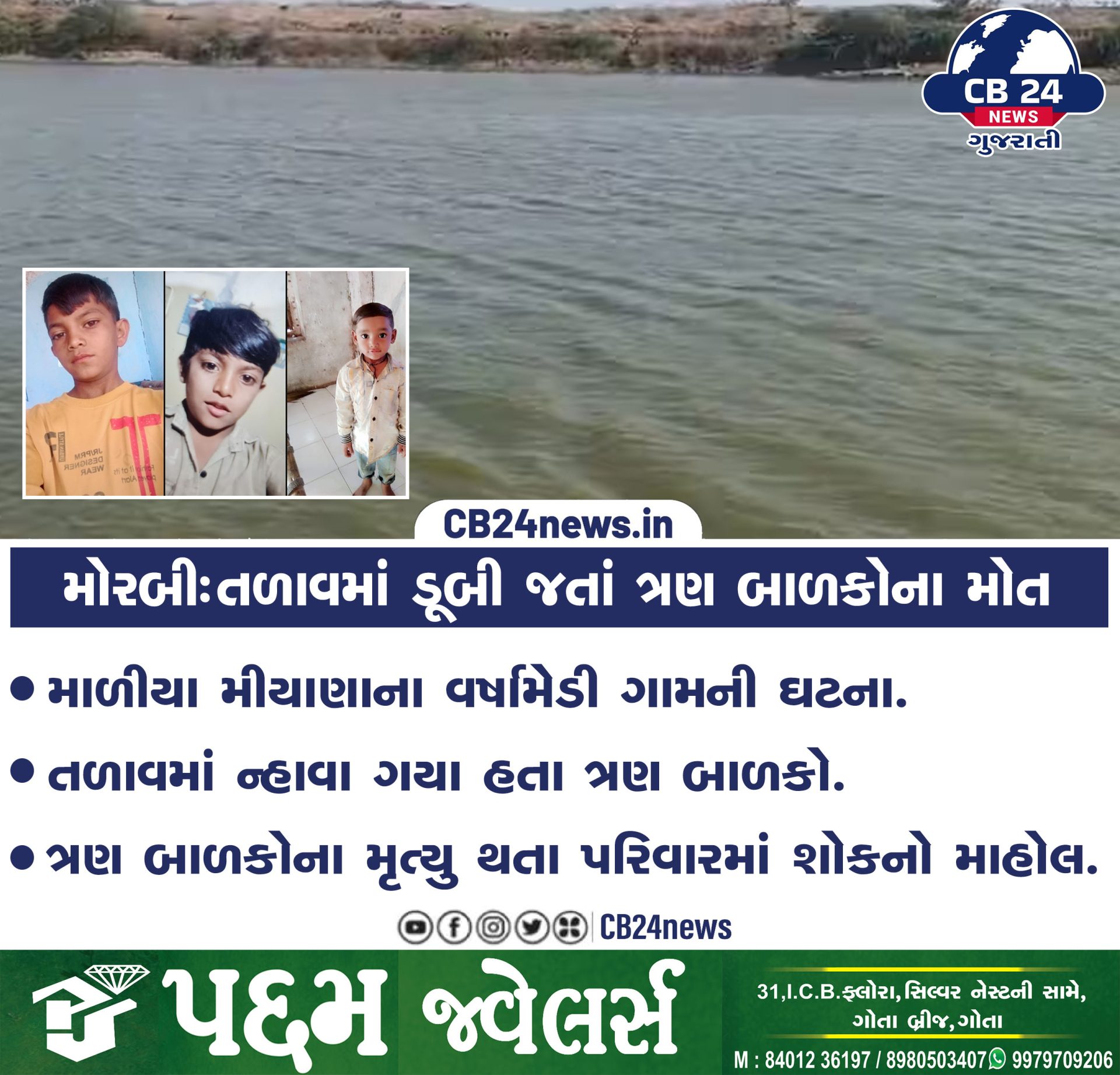 મોરબી:તળાવમાં ડૂબી જતાં ત્રણ બાળકોના મોત