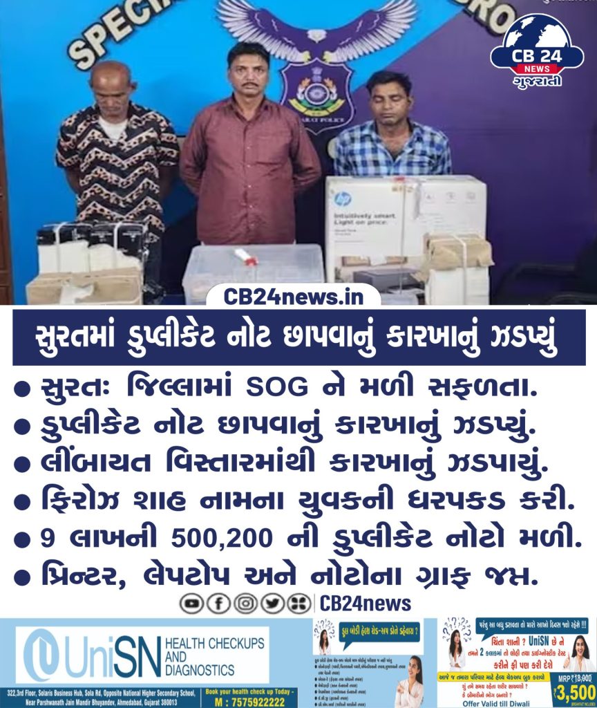 સુરતમાં ડુપ્લીકેટ નોટ છાપવાનું કારખાનું ઝડપ્યું