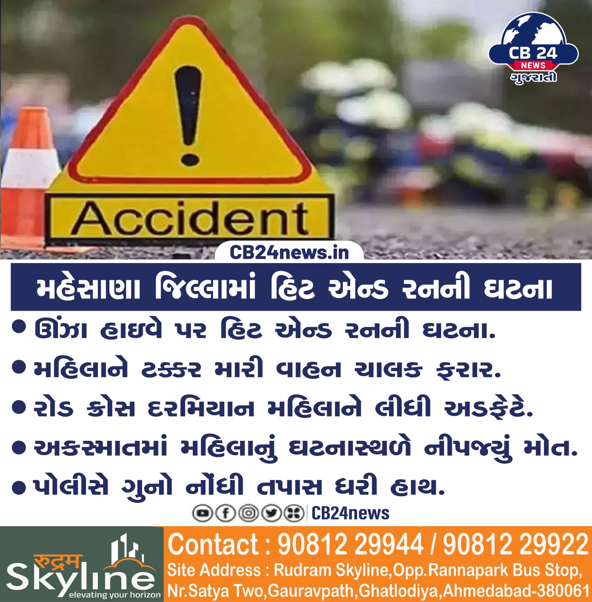 મહેસાણા જિલ્લામાં હિટ એન્ડ રનની ઘટના