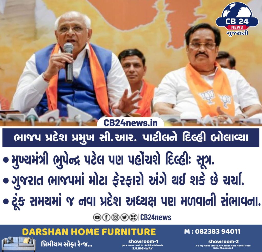ભાજપ પ્રદેશ પ્રમુખ સી.આર. પાટીલને દિલ્હી બોલાવ્યા