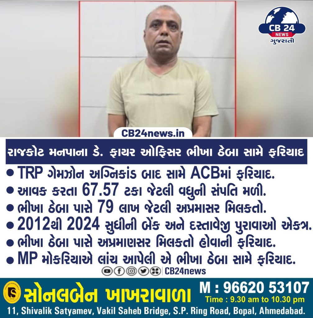 રાજકોટ મનપાના ડે. ફાયર ઓફિસર ભીખા ઠેબા સામે ફરિયાદ