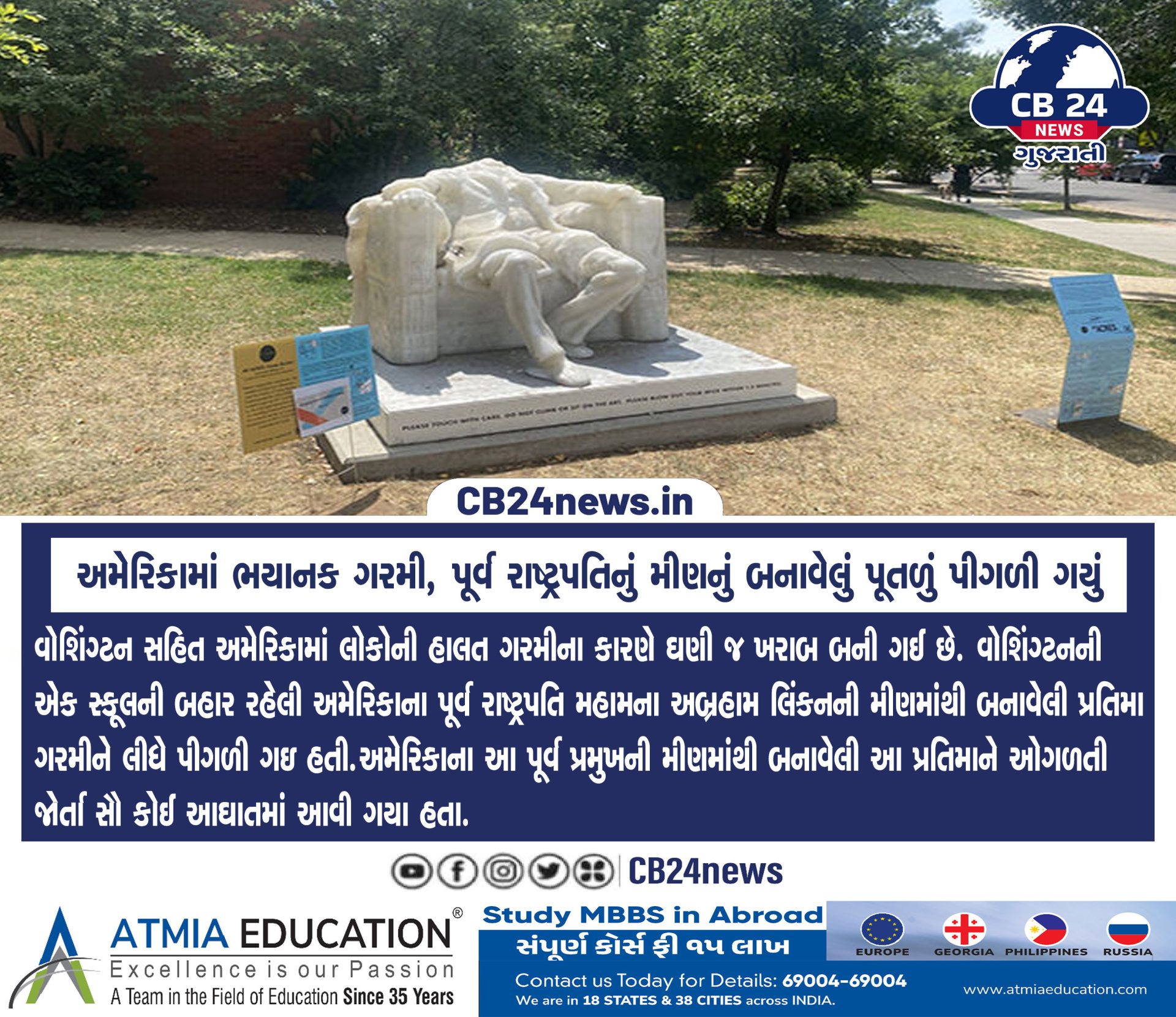 અમેરિકામાં ભયાનક ગરમી, પૂર્વ રાષ્ટ્રપતિનું મીણનું બનાવેલું પૂતળું પીગળી ગયું June 27, 2024 by Cb 24 News