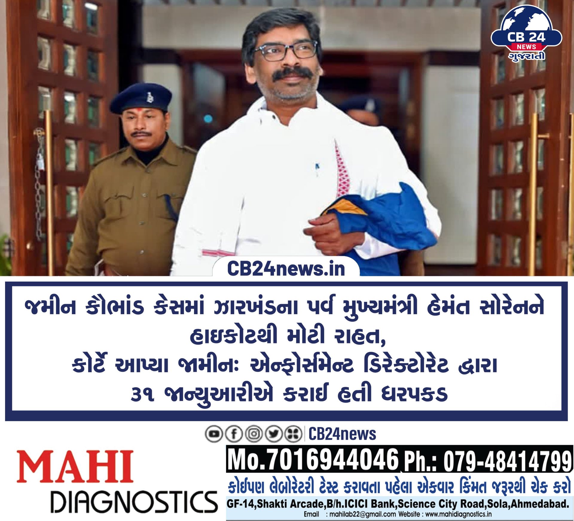 જમીન કૌભાંડ કેસમાં ઝારખંડના પર્વ મુખ્યમંત્રી હેમંત સોરેનને હાઇકોટથી મોટી રાહત, કોર્ટે આપ્યા જામીન: એન્ફોર્સમેન્ટ ડિરેક્ટોરેટ દ્વારા ૩૧ જાન્યુઆરીએ કરાઈ હતી ધરપકડ June 28, 2024 by Cb 24 News