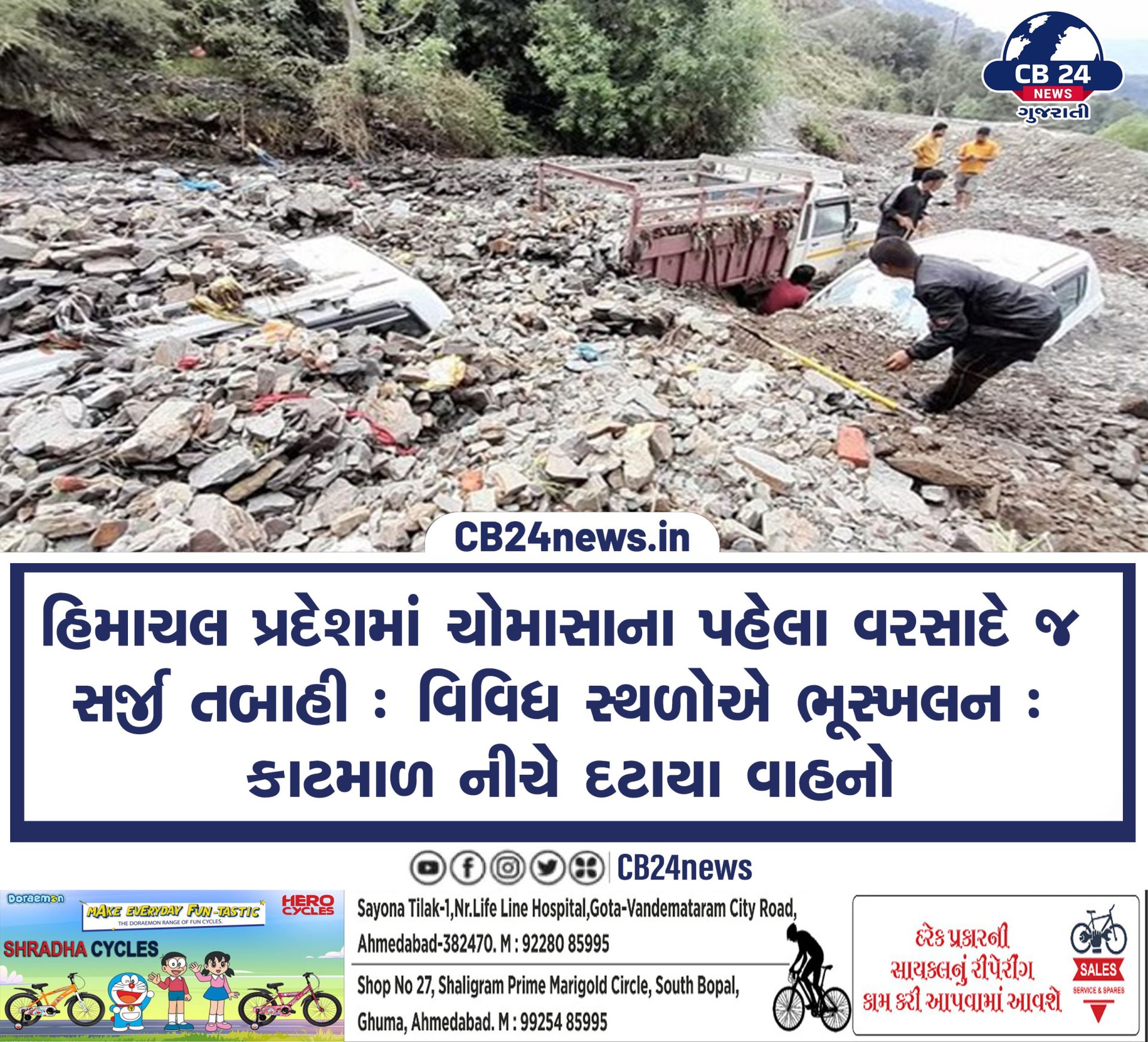 હિમાચલ પ્રદેશમાં ચોમાસાના પહેલા વરસાદે જ સર્જી તબાહી : વિવિધ સ્થળોએ ભૂસ્ખલન : કાટમાળ નીચે દટાયા વાહનો June 28, 2024 by Cb 24 News