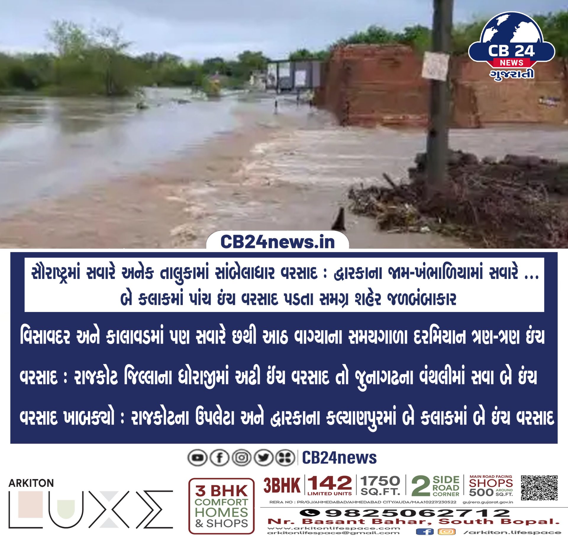 સૌરાષ્ટ્રમાં સવારે અનેક તાલુકામાં સાંબેલાધાર વરસાદ : દ્વારકાના જામ-ખંભાળિયામાં સવારે … બે કલાકમાં પાંચ ઇંચ વરસાદ પડતા સમગ્ર શહેર જળબંબાકાર July 1, 2024 by Cb 24 News