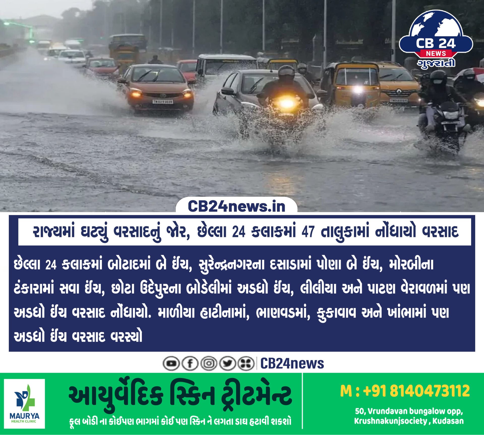 રાજ્યમાં ઘટ્યું વરસાદનું જોર, છેલ્લા 24 કલાકમાં 47 તાલુકામાં નોંધાયો વરસાદ July 11, 2024 by Cb 24 News