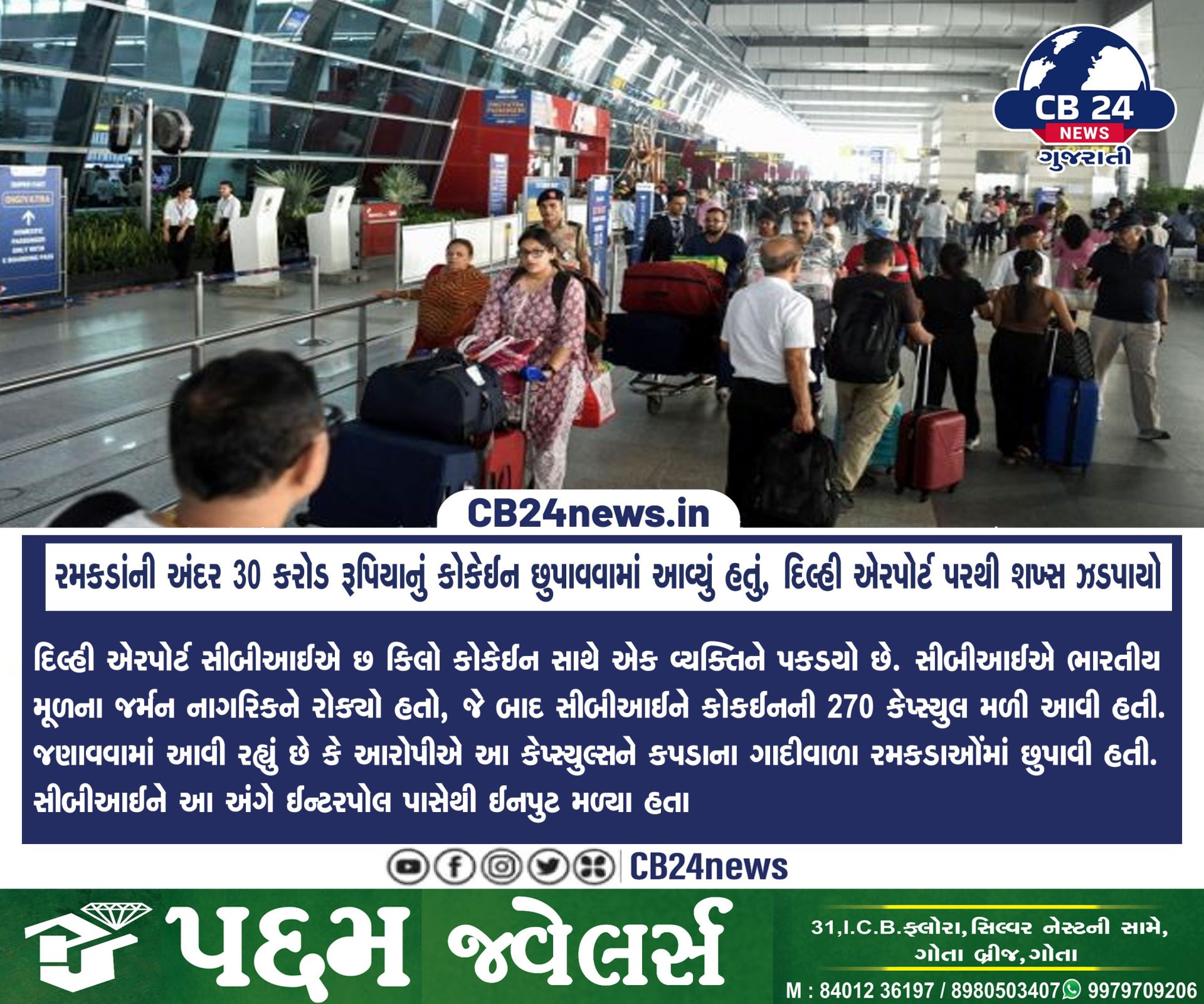 રમકડાંની અંદર ૩૦ કરોડ રૂપિયાનું કોકેઈન છુપાવવામાં આવ્યું હતું, દિલ્હી એરપોર્ટ પરથી શખ્સ ઝડપાયો July 26, 2024 by Cb 24 News
