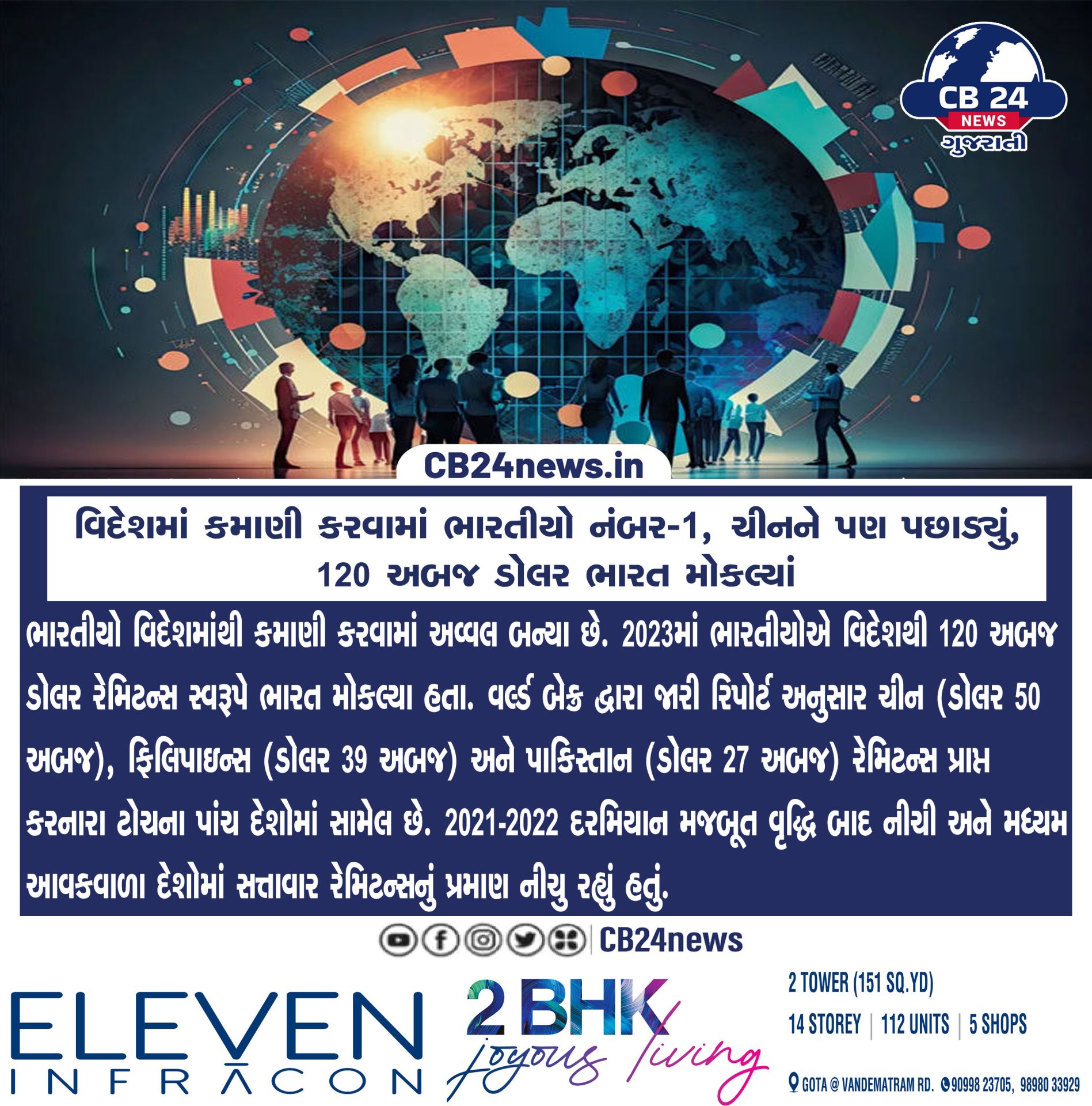વિદેશમાં કમાણી કરવામાં ભારતીયો નંબર-૧, ચીનને પણ પછાડ્યું, ૧૨૦ અબજ ડોલર ભારત મોકલ્યાં June 27, 2024 Read More »