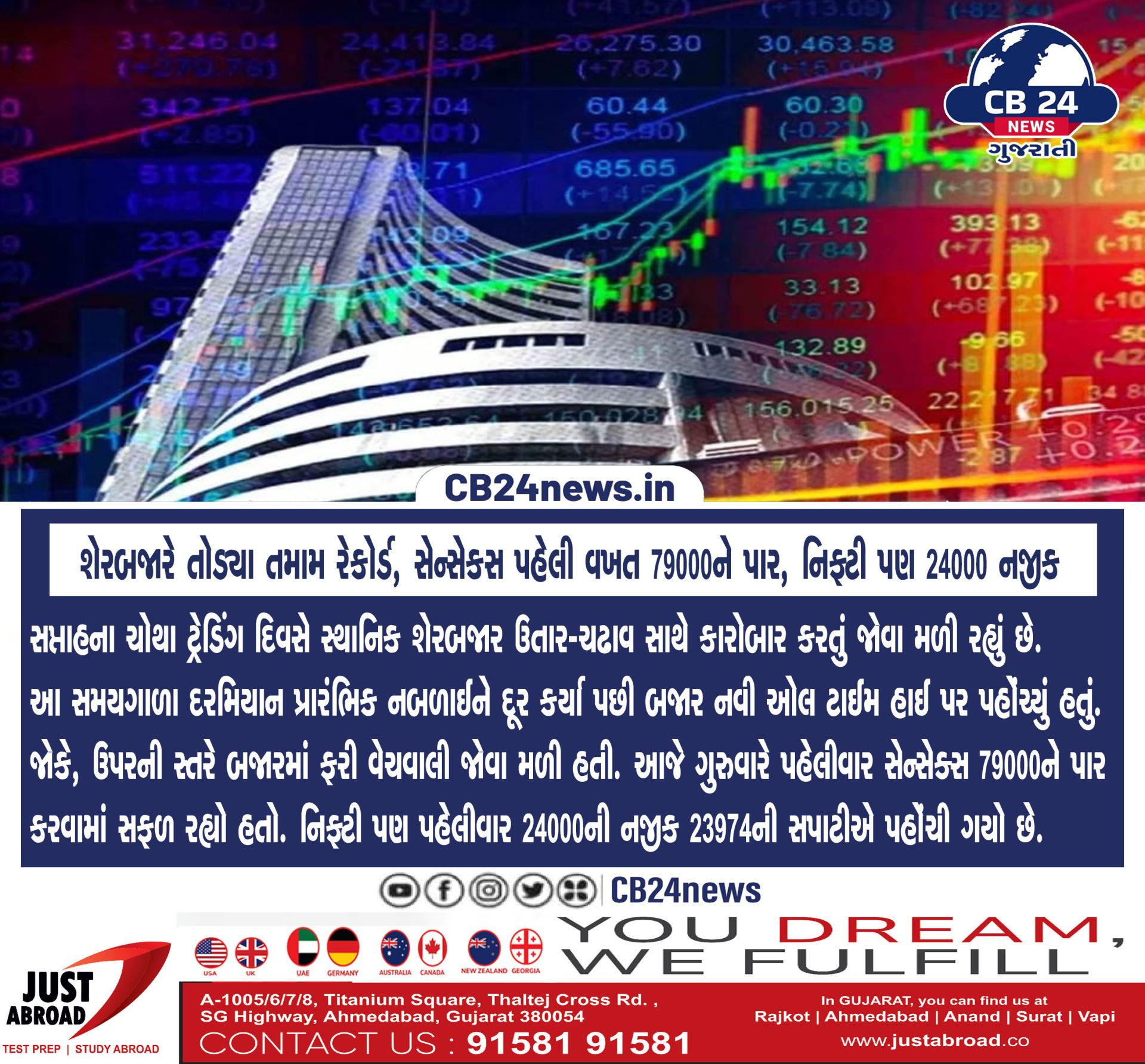 શેરબજારે તોડ્યા તમામ રેકોર્ડ, સેન્સેકસ પહેલી વખત ૭૯૦૦૦ને પાર, નિફ્ટી પણ ૨૪૦૦૦ નજીક June 27, 2024 Read More »