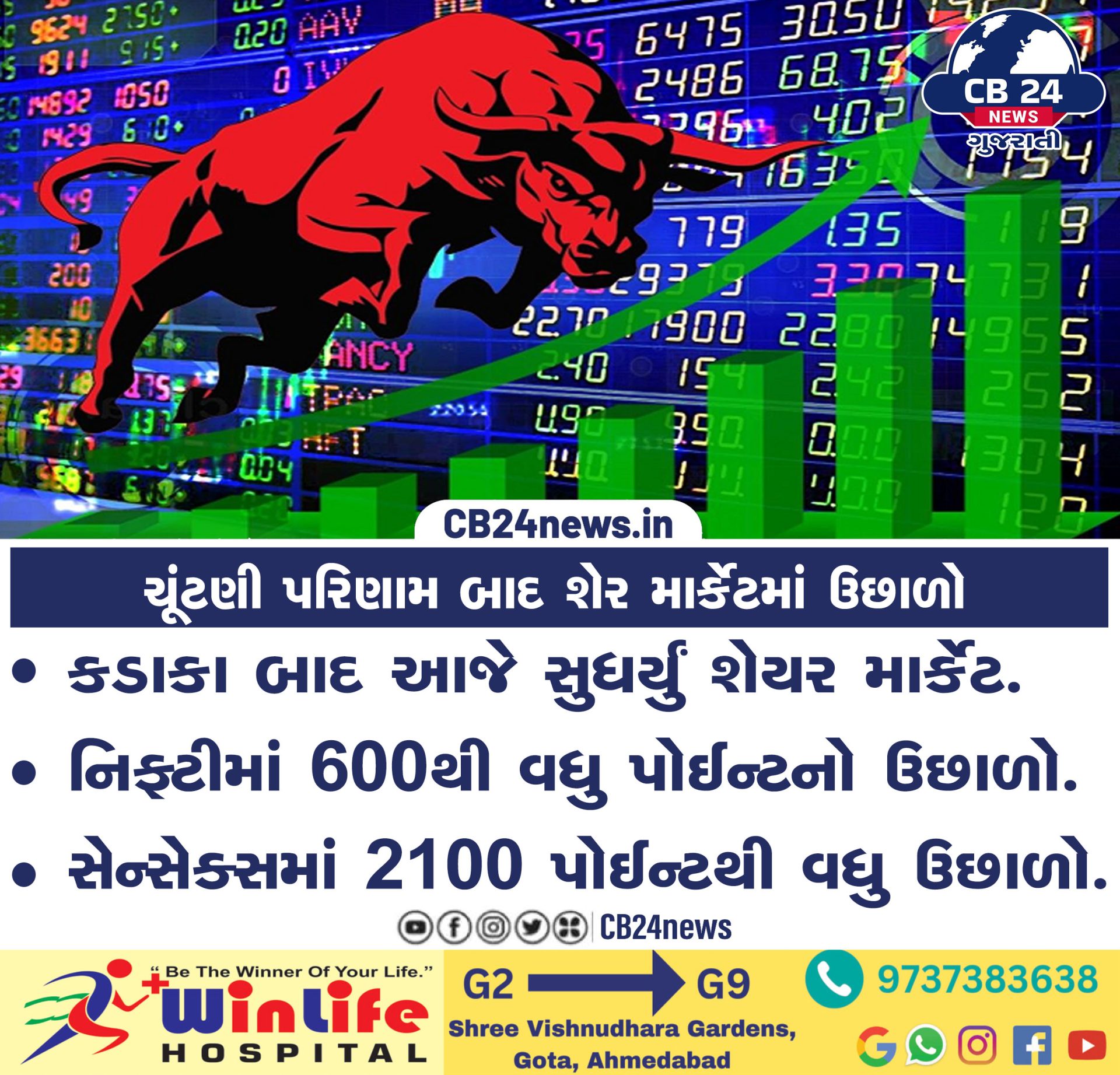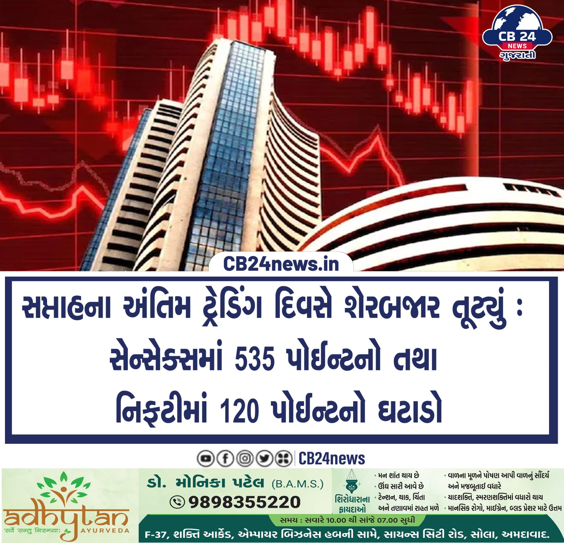 શેરબજાર તૂટ્યું : સેન્સેક્સમાં ૫૩૦ પોઈન્ટનો તથા નિફટીમાં ૧૫૦ પોઈન્ટનો ઘટાડો July 25, 2024 Read More »