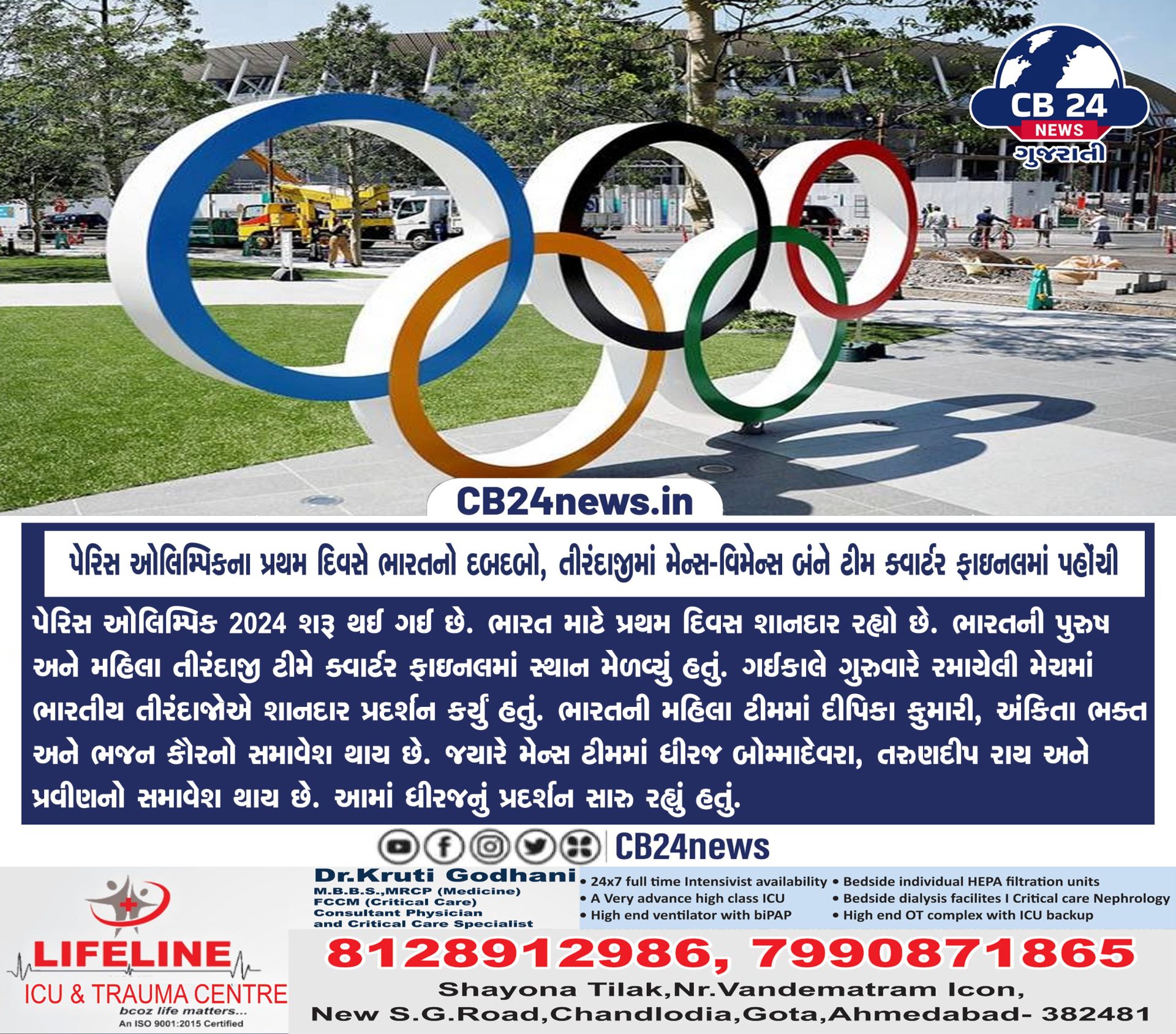 પેરિસ ઓલિમ્પિકના પ્રથમ દિવસે ભારતનો દબદબો, તીરંદાજીમાં મેન્સ-વિમેન્સ બંને ટીમ ક્વાર્ટર ફાઇનલમાં પહોંચી July 26, 2024 Read More »