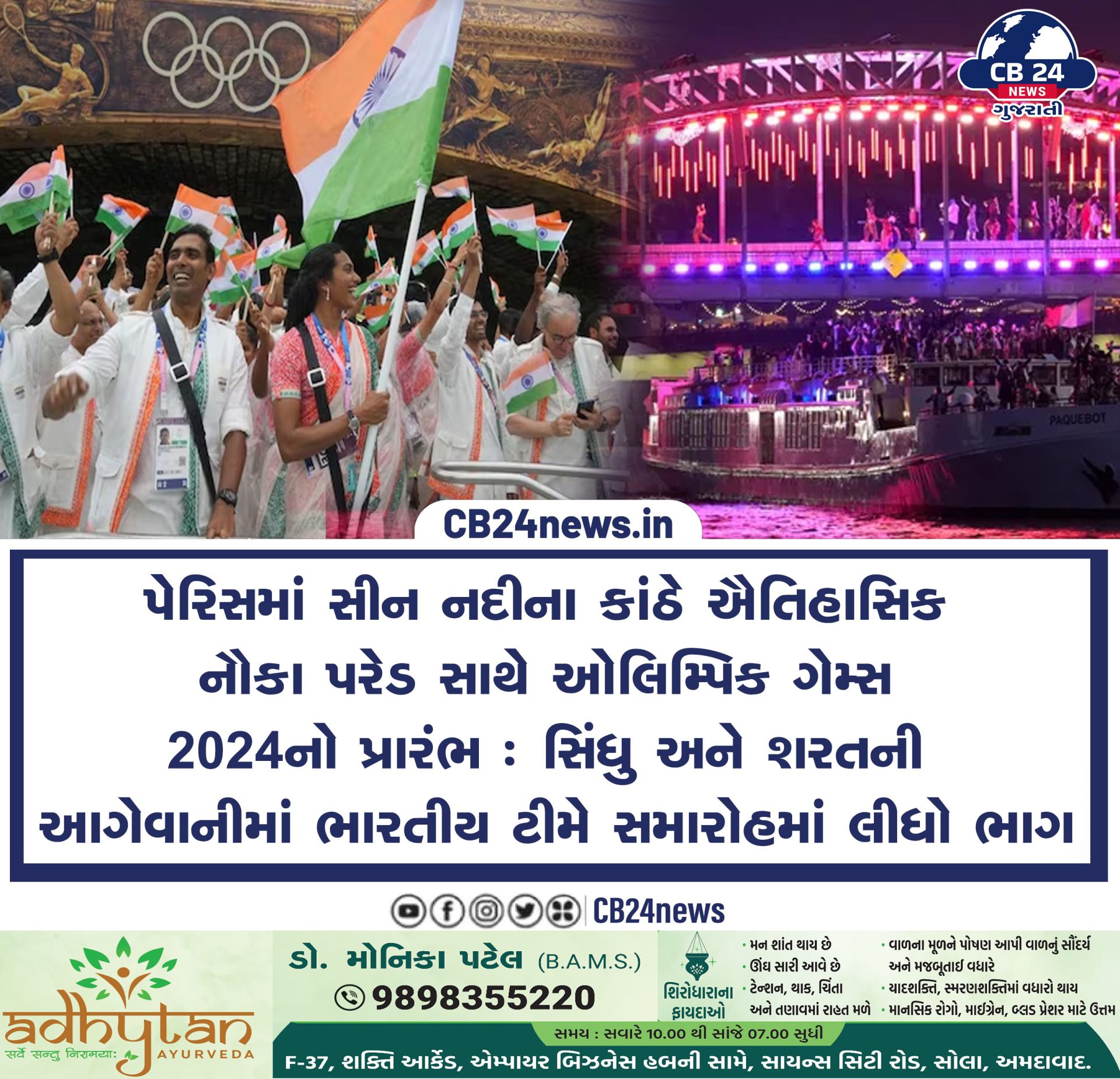 પેરિસમાં સીન નદીના કાંઠે ઐતિહાસિક નૌકા પરેડ સાથે ઓલિમ્પિક ગેમ્સ ૨૦૨૪નો પ્રારંભ : સિંધુ અને શરતની આગેવાનીમાં ભારતીય ટીમે સમારોહમાં લીધો ભાગ July 27, 2024 Read More »