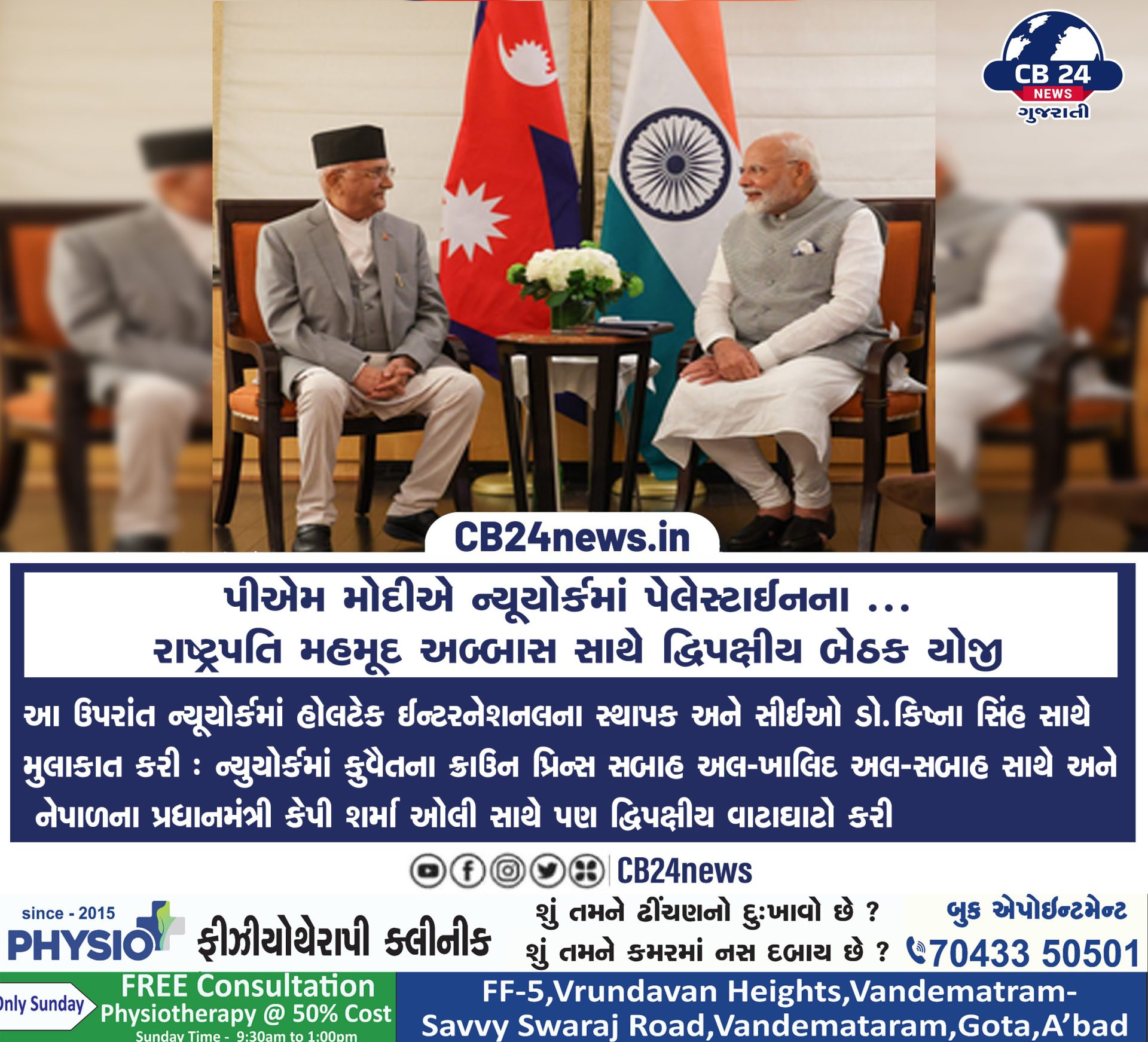 પીએમ મોદીએ ન્યૂયોર્કમાં પેલેસ્ટાઈનના … રાષ્ટ્રપતિ મહમૂદ અબ્બાસ સાથે દ્વિપક્ષીય બેઠક યોજી September 23, 2024 Read More »