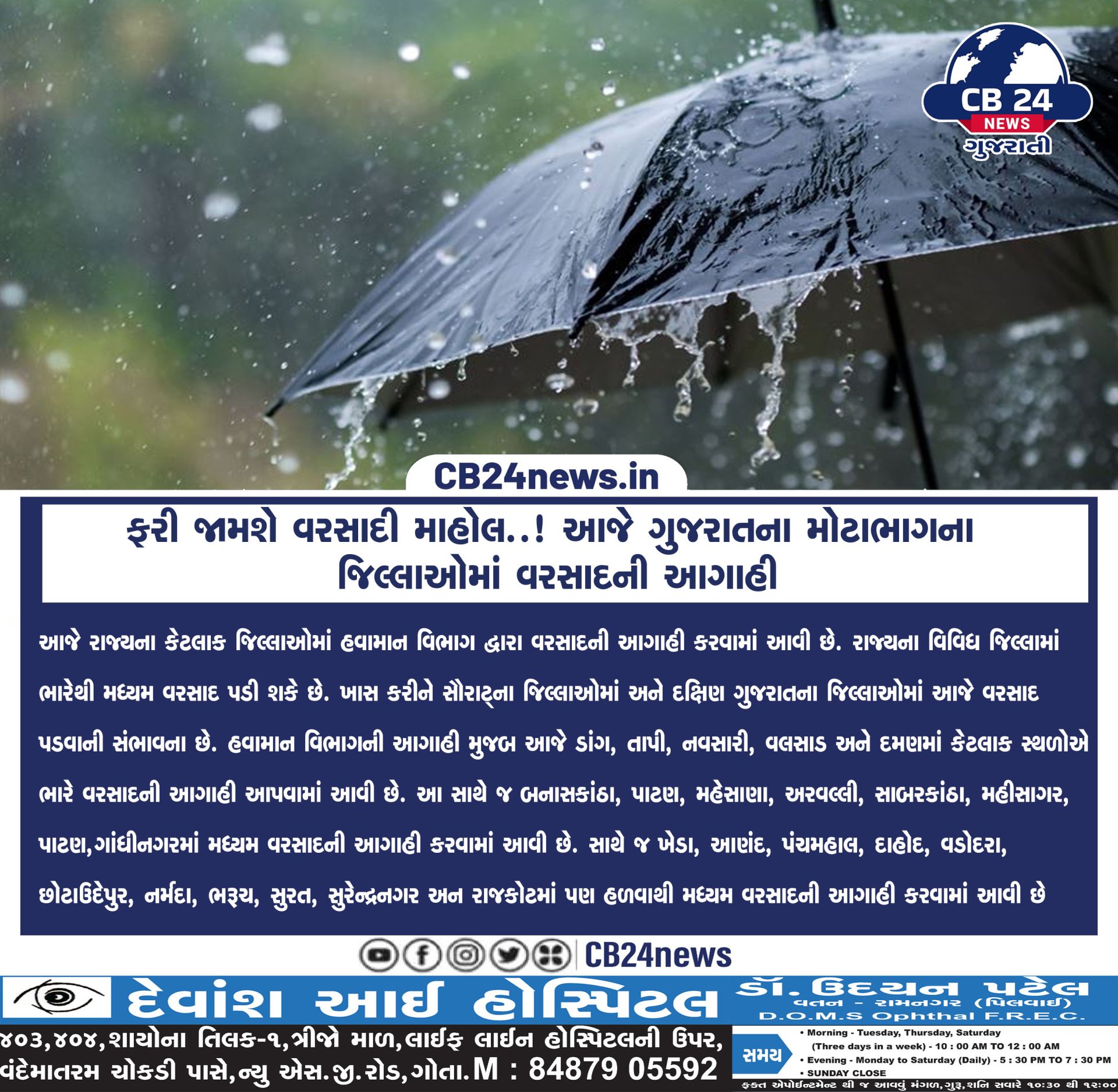 ફરી જામશે વરસાદી માહોલ..! આજે ગુજરાતના મોટાભાગના જિલ્લાઓમાં વરસાદની આગાહી August 20, 2024 Read More »