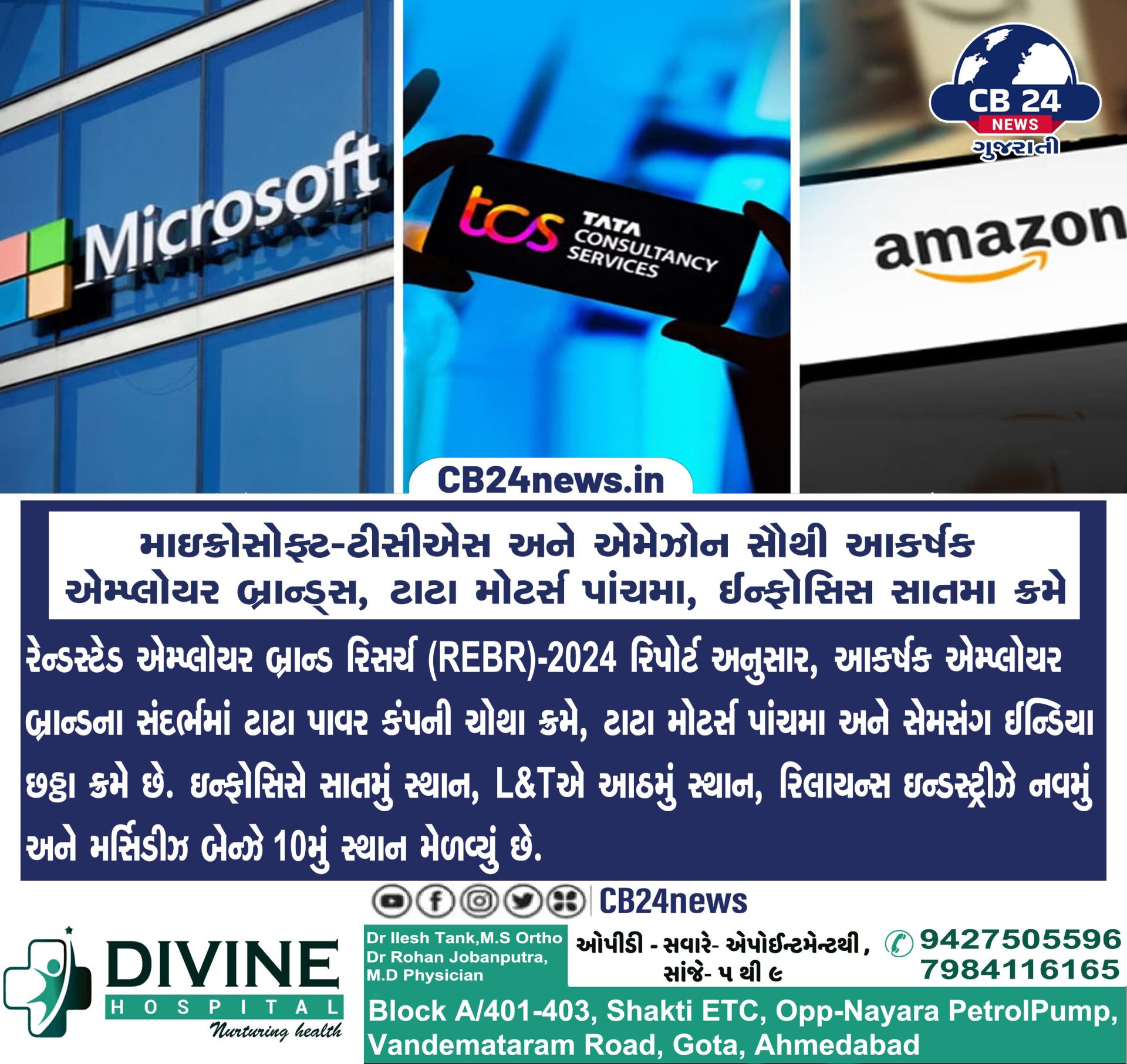 માઇક્રોસોફ્ટ-ટીસીએસ અને એમેઝોન સૌથી આકર્ષક એમ્પ્લોયર બ્રાન્ડ્સ, ટાટા મોટર્સ પાંચમા, ઈન્ફોસિસ સાતમા ક્રમે August 8, 2024 Read More »