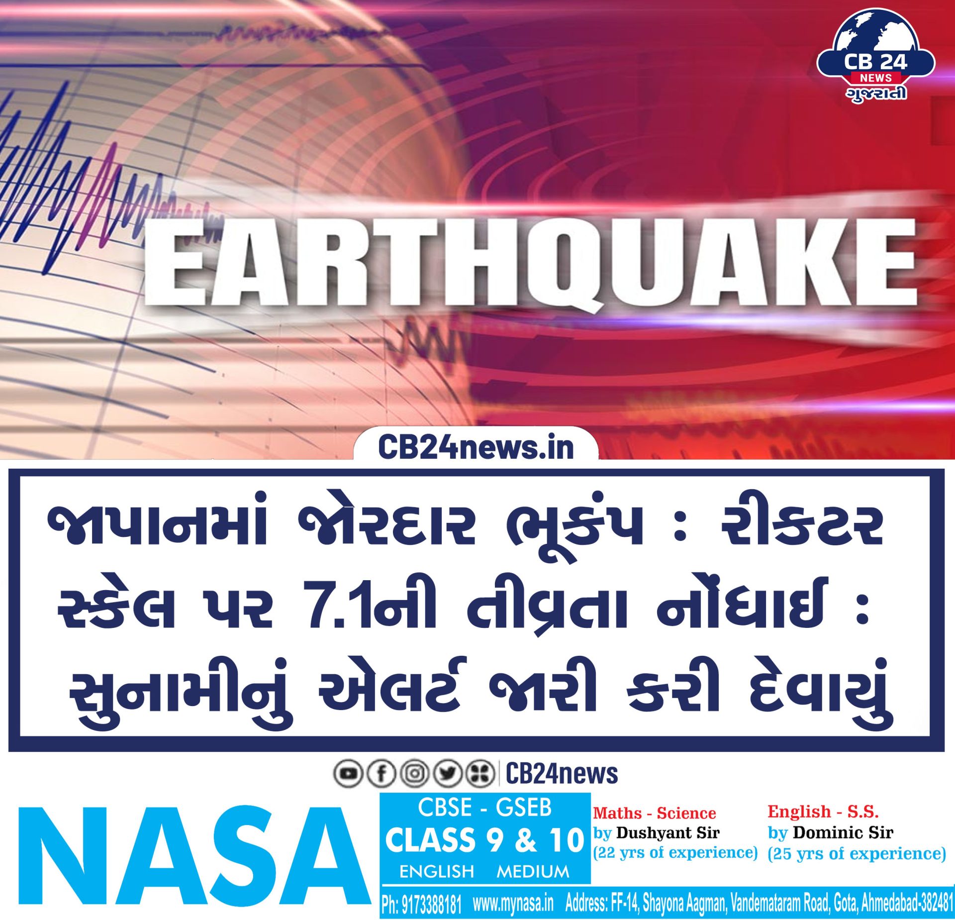 જાપાનમાં જોરદાર ભૂકંપ : રીકટર સ્કેલ પર 7.1ની તીવ્રતા નોંધાઈ : સુનામીનું એલર્ટ જારી કરી દેવાયું August 8, 2024 Read More »