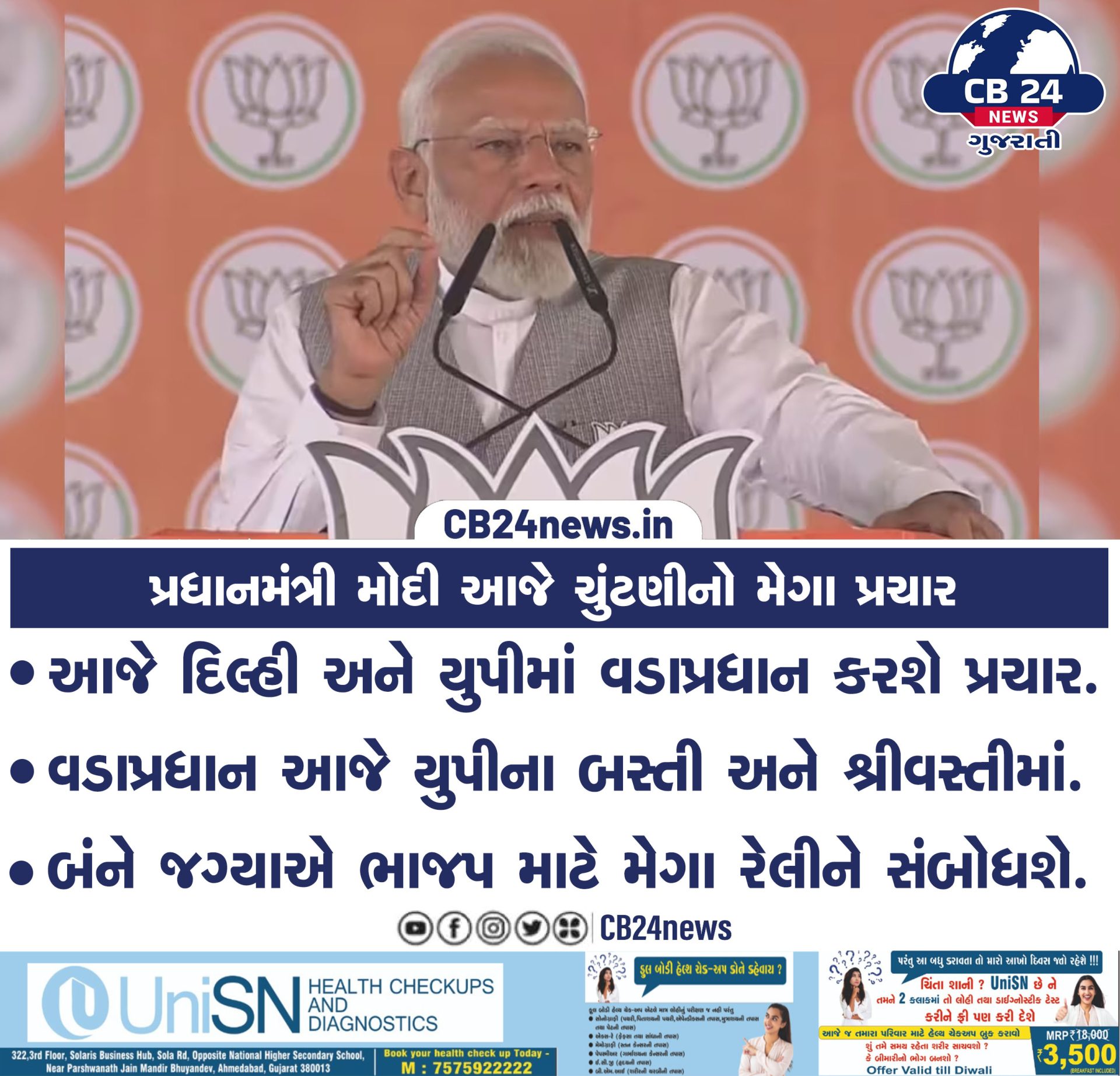 પ્રધાનમંત્રી મોદી આજે ચુંટણીનો મેગા પ્રચાર